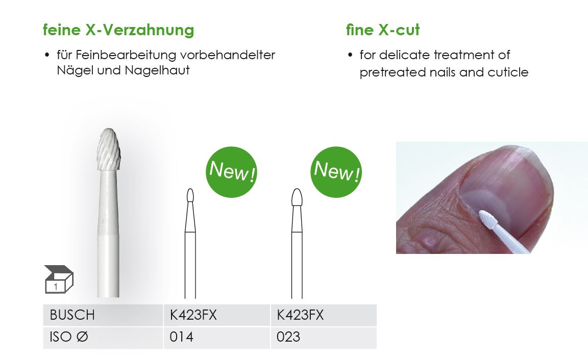 Ob für mykotisch oder grypotisch verdickte Nägel oder auch für GEL und Acryl - die KERA-Fräser Serie bietet Ihnen die geeignete Verzahnung.