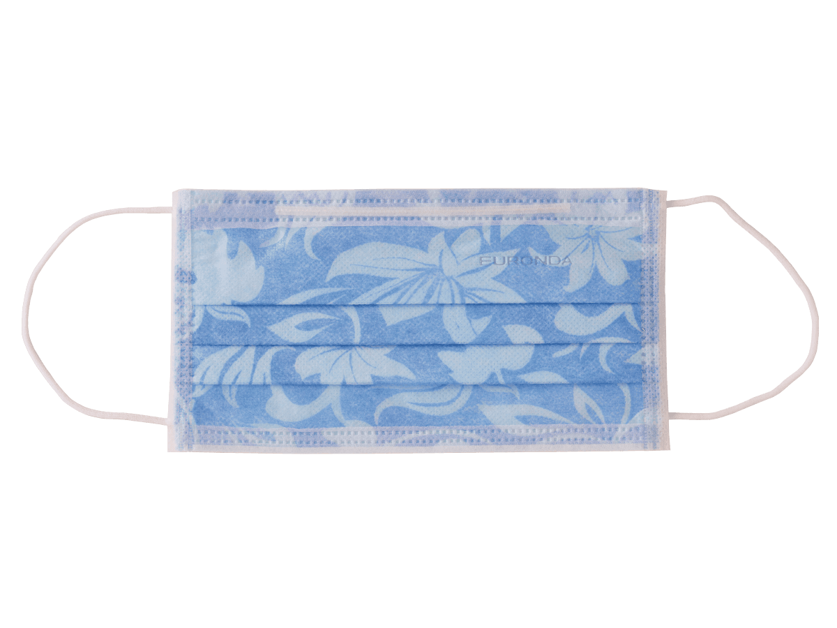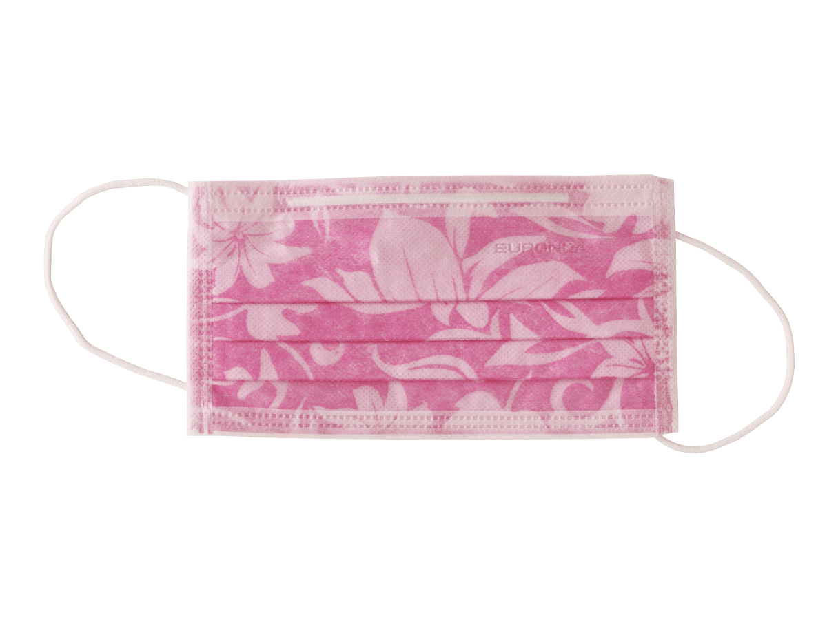 Gewebeumwickelte Gummizüge verringern die Bildung von Druckstellen. Der vollständig eingearbeitete Nasenbügel ist besonderes lang. So lässt sich der Mundschutz bequem individuell an die Gesichtsform anpassen. Der weiche Vliesstoff, die sanften Gummizüge und der Nasenbügel sorgen für perfekten Sitz. Das florale Muster setzt einen modischen Akzent und wirkt beruhigend auf den Patienten.